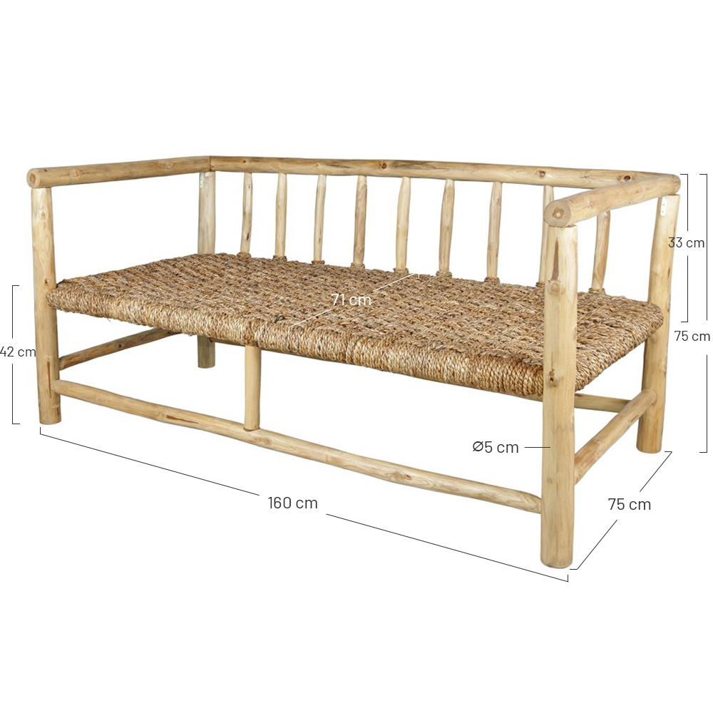 Panchina Valentino in legno e fibra naturale, in stile mediterraneo.