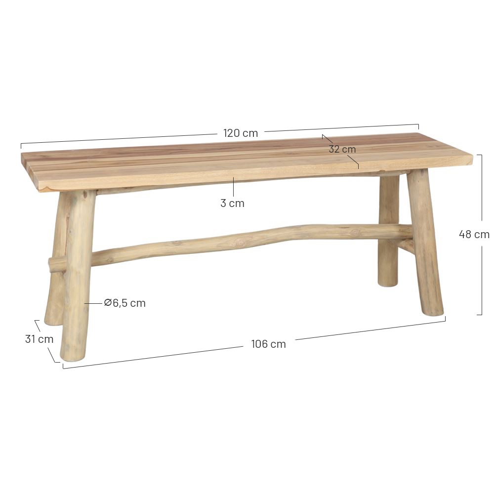 La panca in legno Janory è un pezzo perfetto per gli spazi in stile rustico o mediterraneo. Realizzata in legno massiccio di teak, questa panca ha una finitura naturale che aggiunge un tocco organico ai tuoi interni.