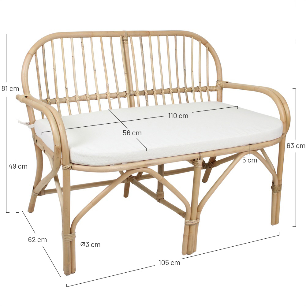 Struttura in bambù e midollo di rattan naturale.