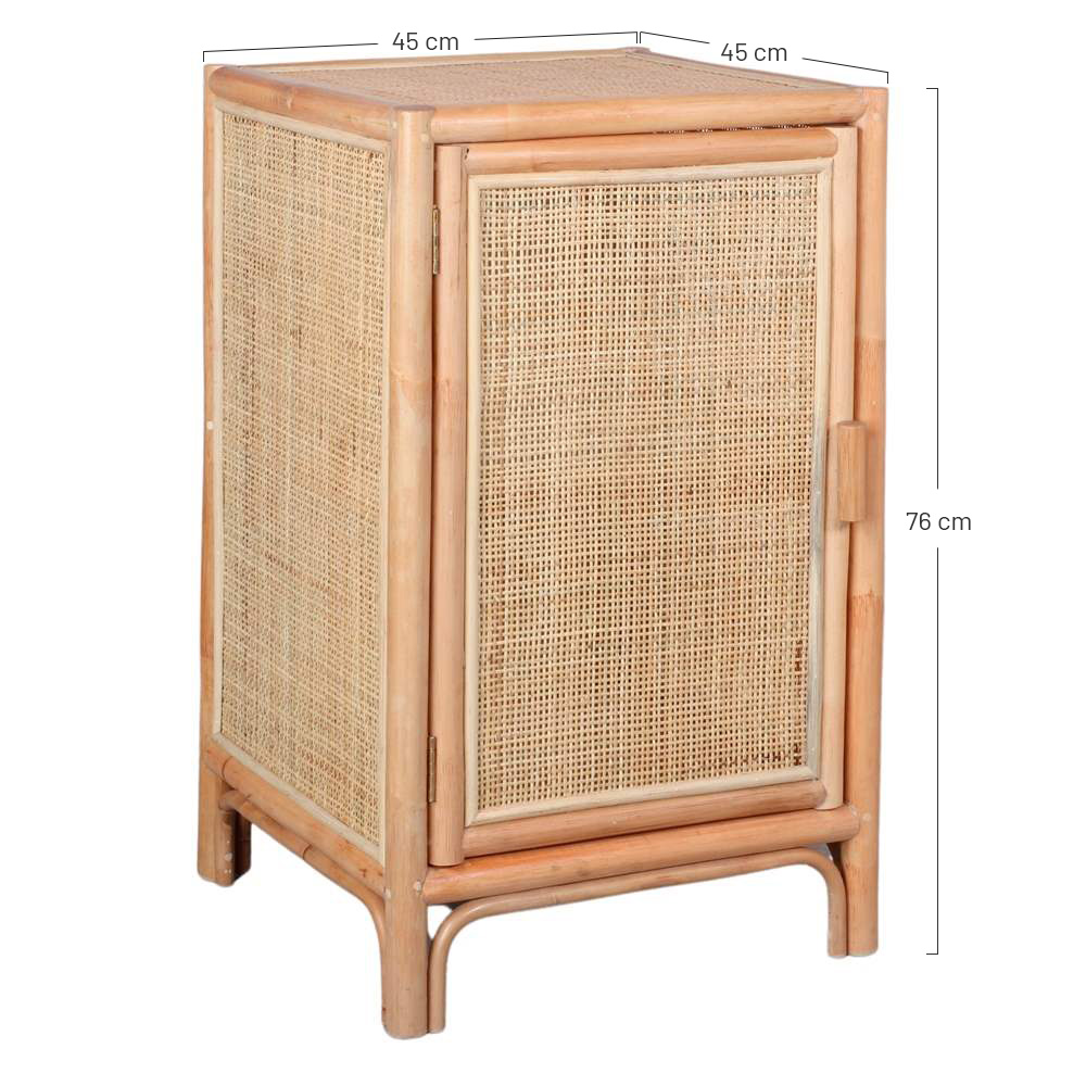 Comodino con anta frontale in bambù naturale con frontali in rattan tipo cannage.