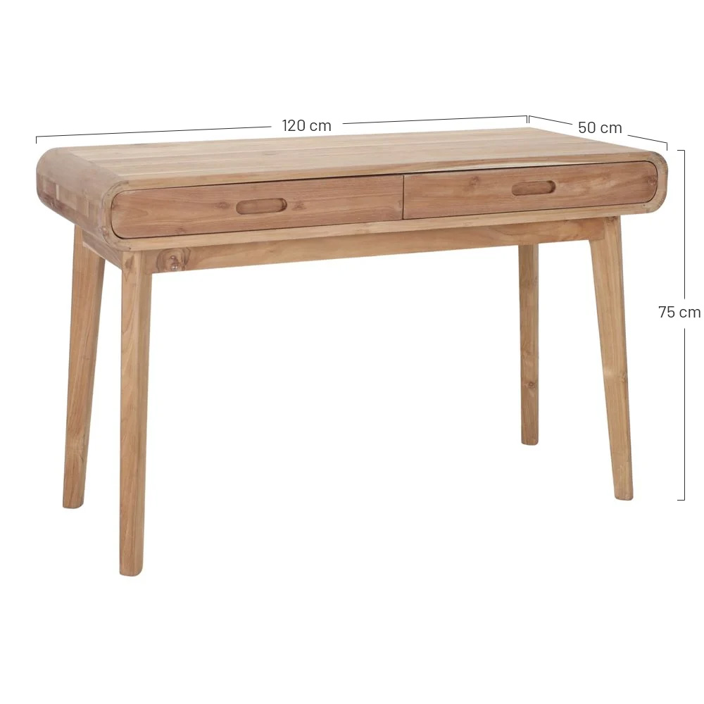 Consolle – scrivania in legno massiccio di teak con 2 cassetti.