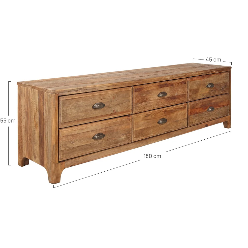 Realizzato in legno di pino riciclato con 6 cassetti.