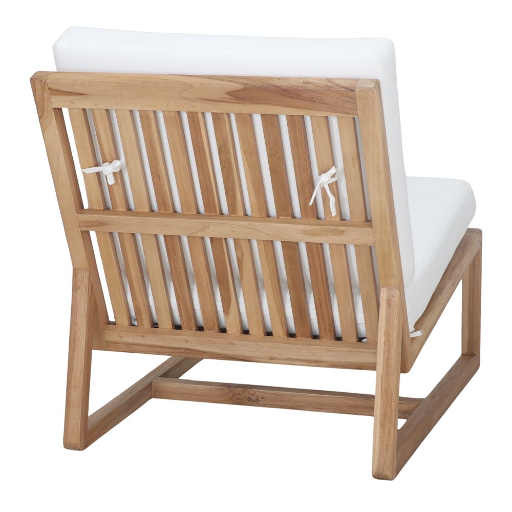 La struttura è realizzata in legno massello di teak con una finitura naturale, che ne esalta le venature e garantisce una lunga durata nel tempo. Il teak, noto per la sua resistenza e bellezza, assicura stabilità e un aspetto accogliente che si adatta a diversi stili di arredamento.