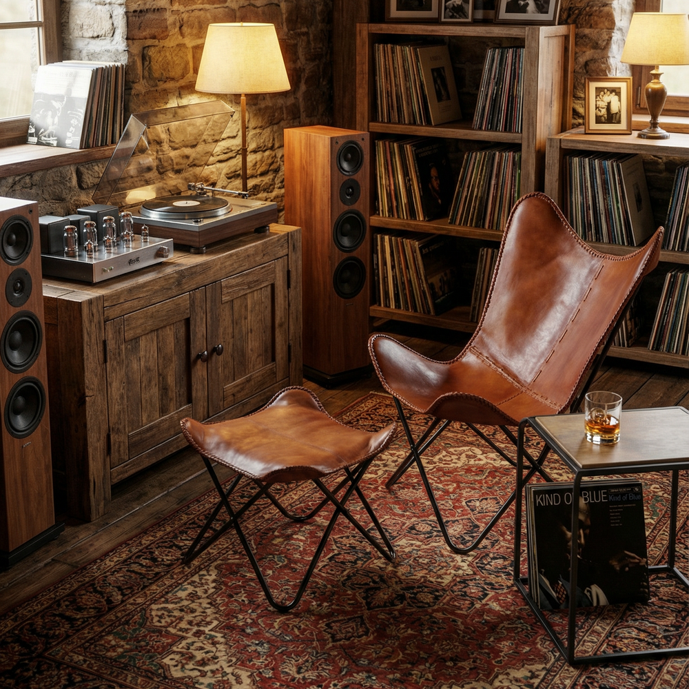 POLTRONA BUTTERFLY IN PELLE CARAMELLO