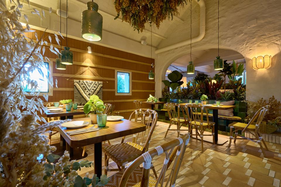 Lo spazio è stato completamente rinnovato, optando per uno stile rustico, dove la vegetazione naturale gioca un ruolo molto importante. L’illuminazione e la decorazione sono state scelte con grande cura, cercando sempre la concordanza, l’eleganza e l’armonia tra tutti gli arredi, lo stile, i materiali, i colori e creando un’atmosfera rilassata e piacevole per i sensi. In questo spazio, i commensali possono godere di un’ottima proposta gastronomica e sentirsi a proprio agio. Per l’arredamento sono stati scelti diversi prodotti del nostro catalogo, tra cui tavoli in legno, sedie in corda, rattan sintetico e lampade in fibre naturali.