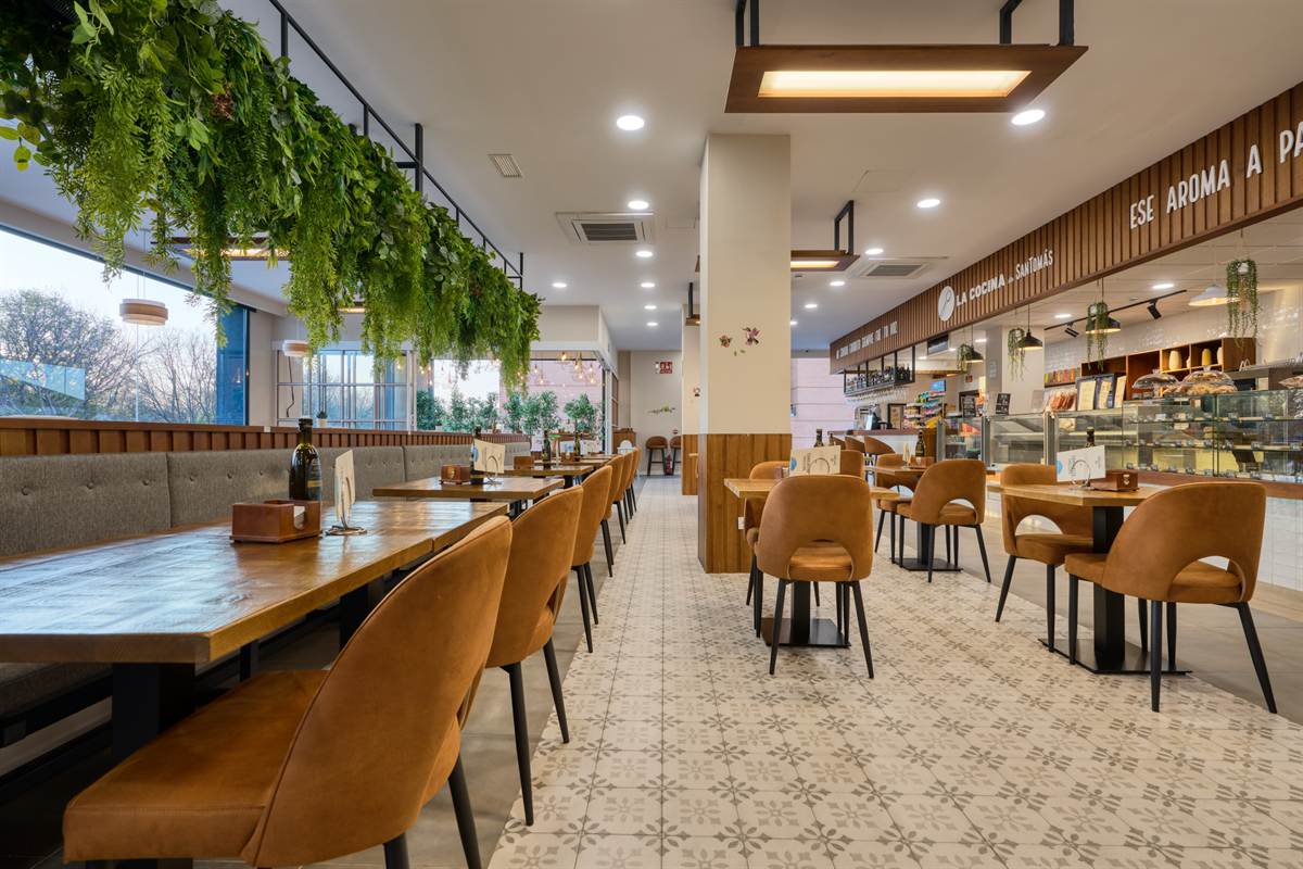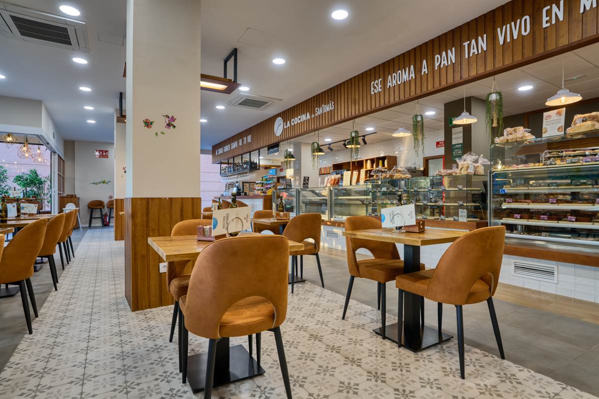 A San Tomás Bormujos, ogni dettaglio —dalle scritte fatte a mano sulle pareti alla disposizione delle vetrine— ribadisce il suo motto: «Artigianato dei sensi». Uno spazio che dimostra come un buon design d’interni sia l’ingrediente fondamentale per gustare un ottimo caffè.