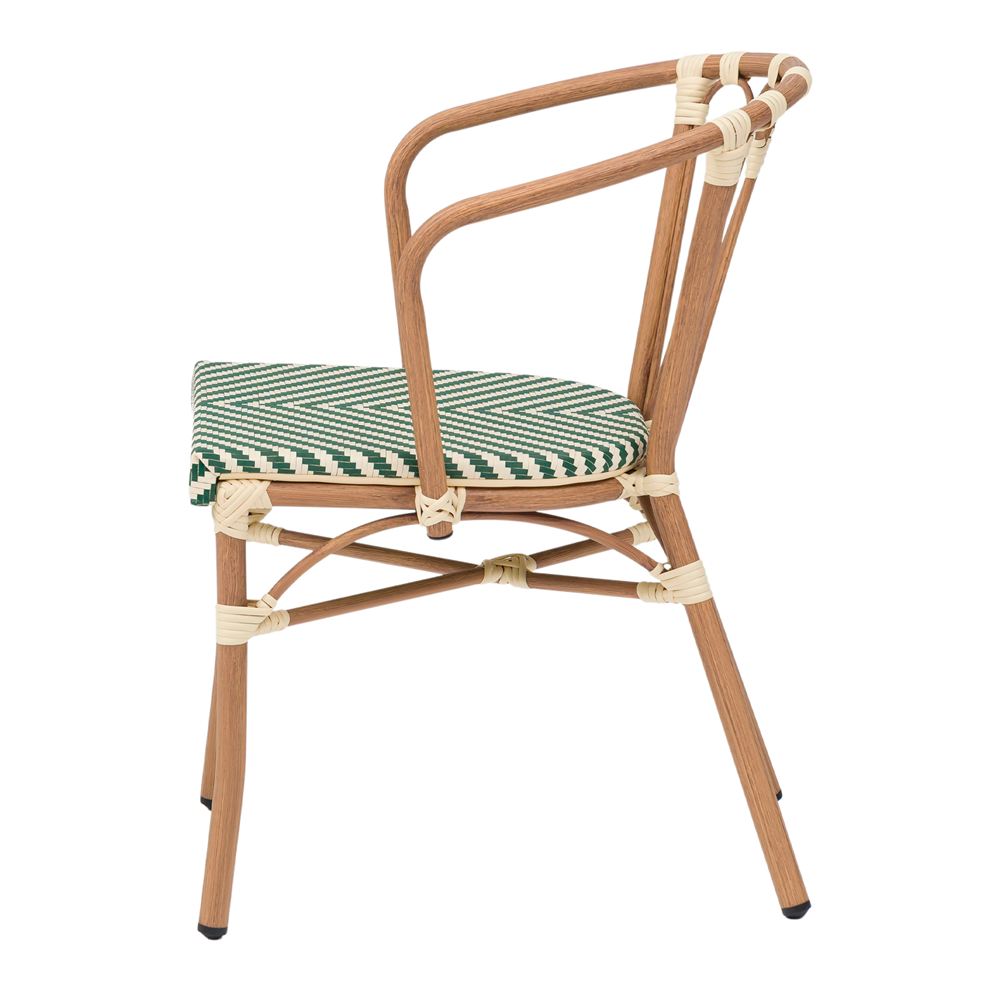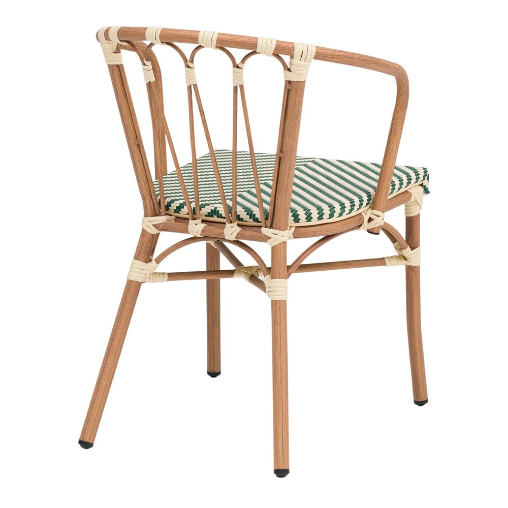 A differenza delle tradizionali sedie in legno, che richiedono una manutenzione costante e risentono dell’umidità, la Vendome presenta una robusta struttura tubolare in alluminio. Ciò che la contraddistingue davvero è la sua impeccabile finitura effetto legno, che conferisce il calore visivo dell’ulivo ma con la leggerezza e le proprietà anticorrosive del metallo. Questa combinazione permette di godere di un aspetto organico e accogliente senza le preoccupazioni tipiche dell’arredamento da esterno.