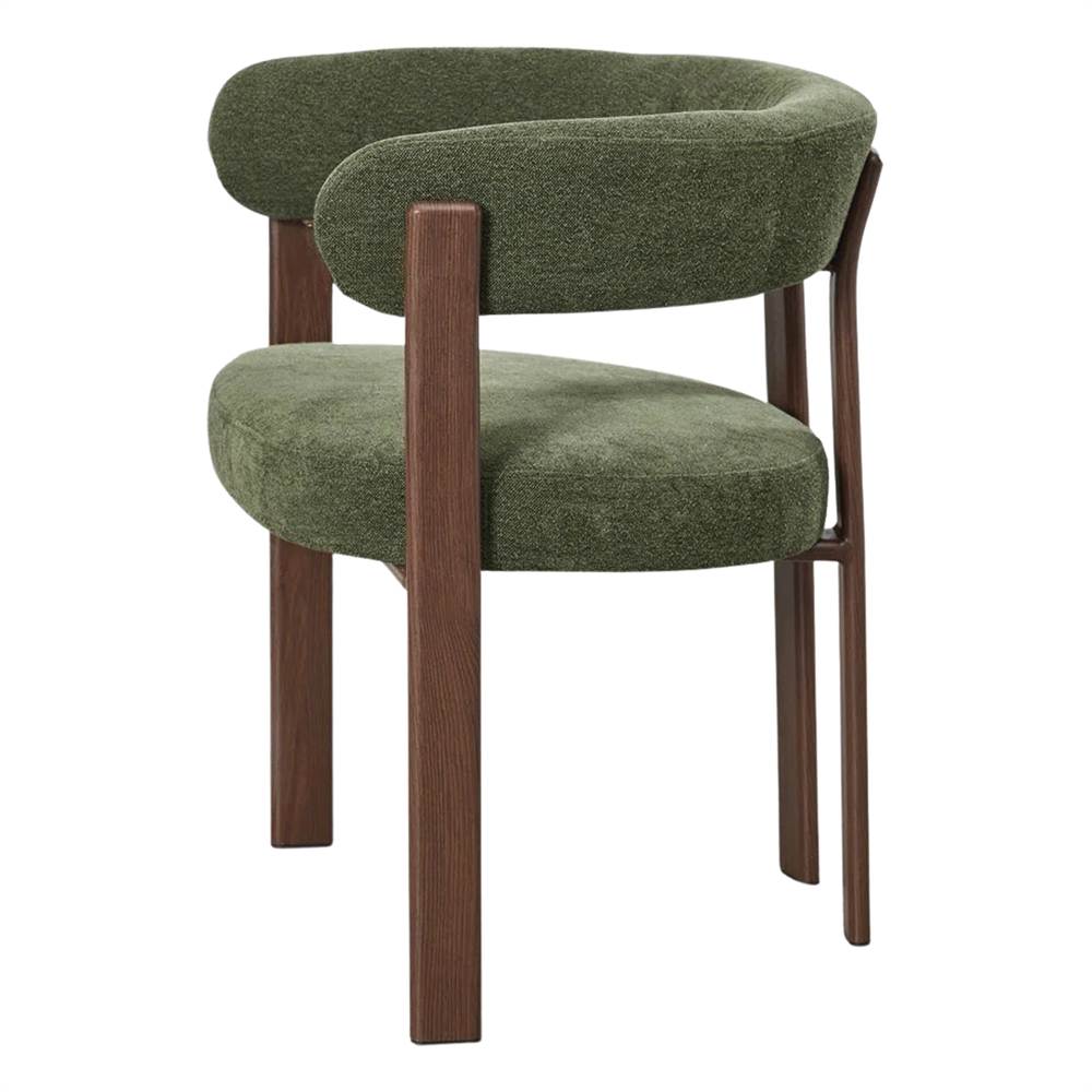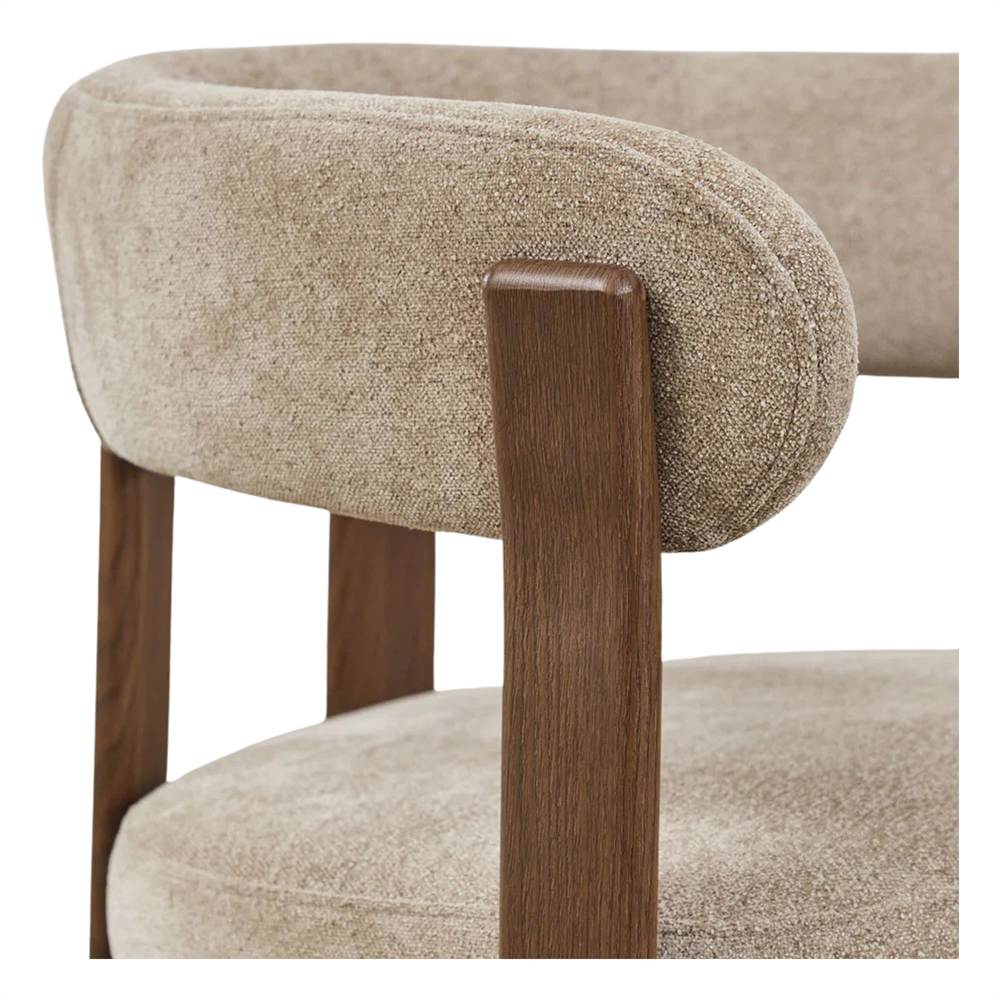 La seduta e lo schienale imbottiti in tessuto offrono un’esperienza confortevole e accogliente. Il tessuto, piacevole al tatto, fornisce calore e rafforza il carattere accogliente del pezzo, mentre la forma ergonomica dello schienale assicura un buon sostegno.