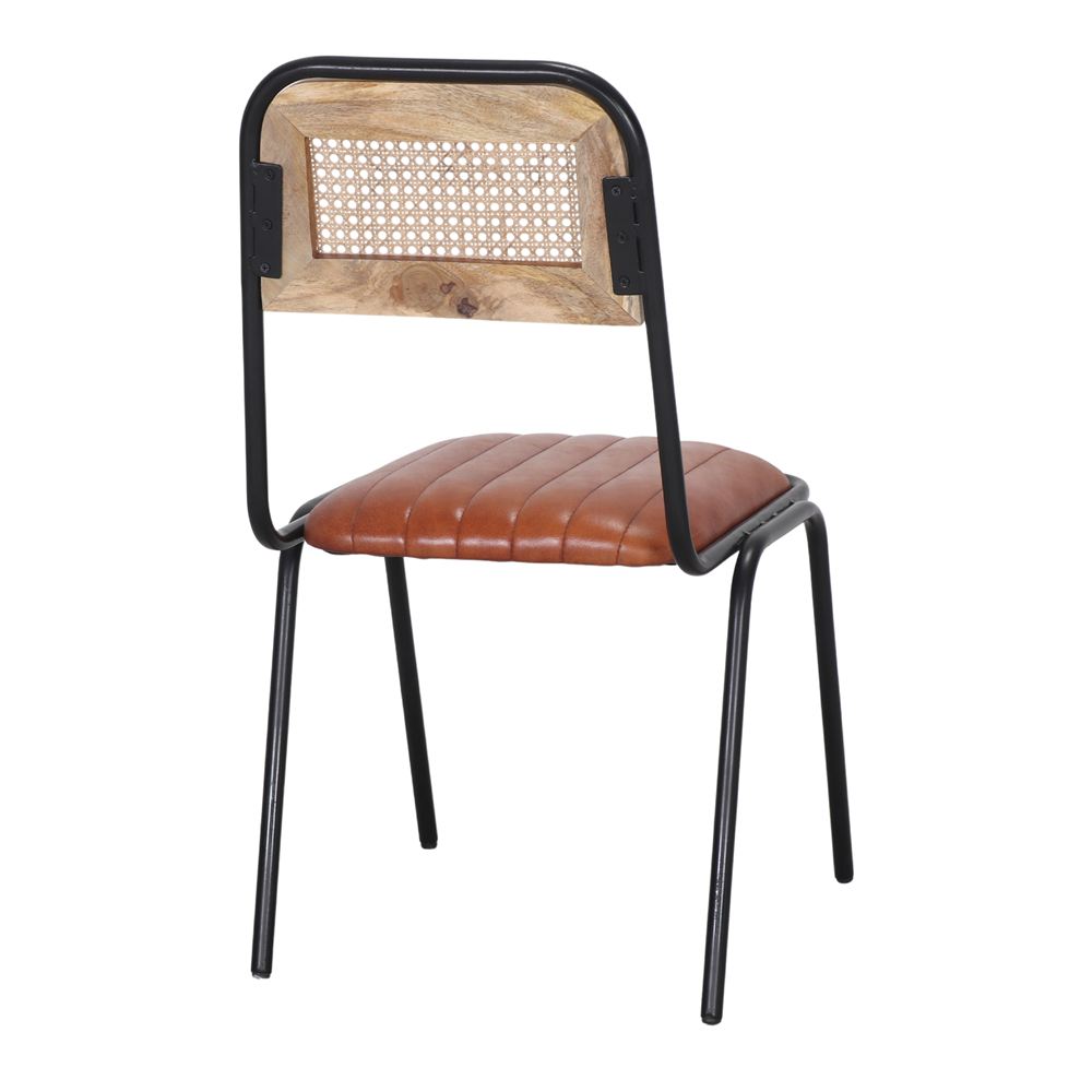 Seduta rivestita in pelle e schienale in legno massiccio di mango naturale e giunco di tipo cannage.