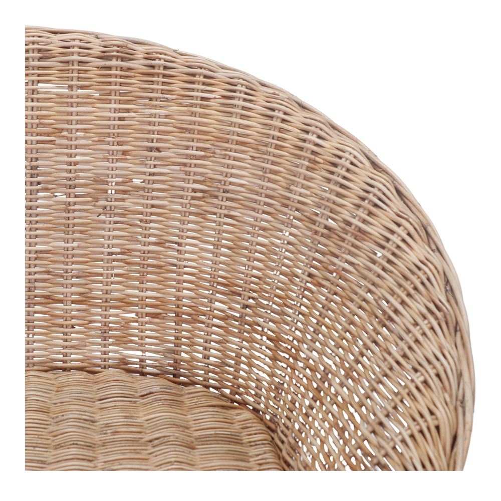 La struttura è realizzata in legno massello di teak, un legno pregiato che si distingue per la sua resistenza e durata. La finitura naturale ne esalta le venature e conferisce calore all’insieme, garantendo stabilità e solidità anche in caso di uso prolungato. Questa solida base è completata dalla seduta e dallo schienale in fibra sintetica intrecciata, un materiale leggero e resistente che offre comfort, traspirabilità e un aspetto artigianale.