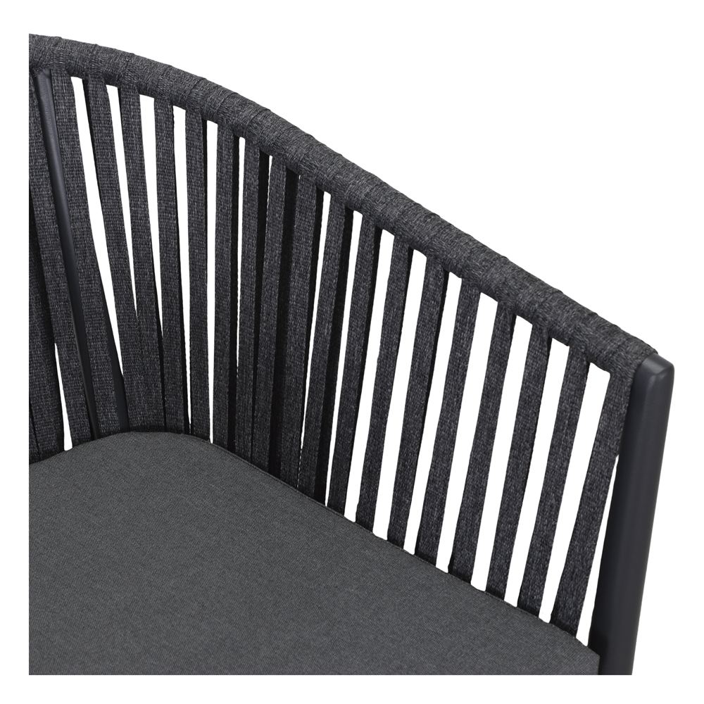 Seduta e schienale in corda di poliestere. Cuscino imbottito in tela incluso.