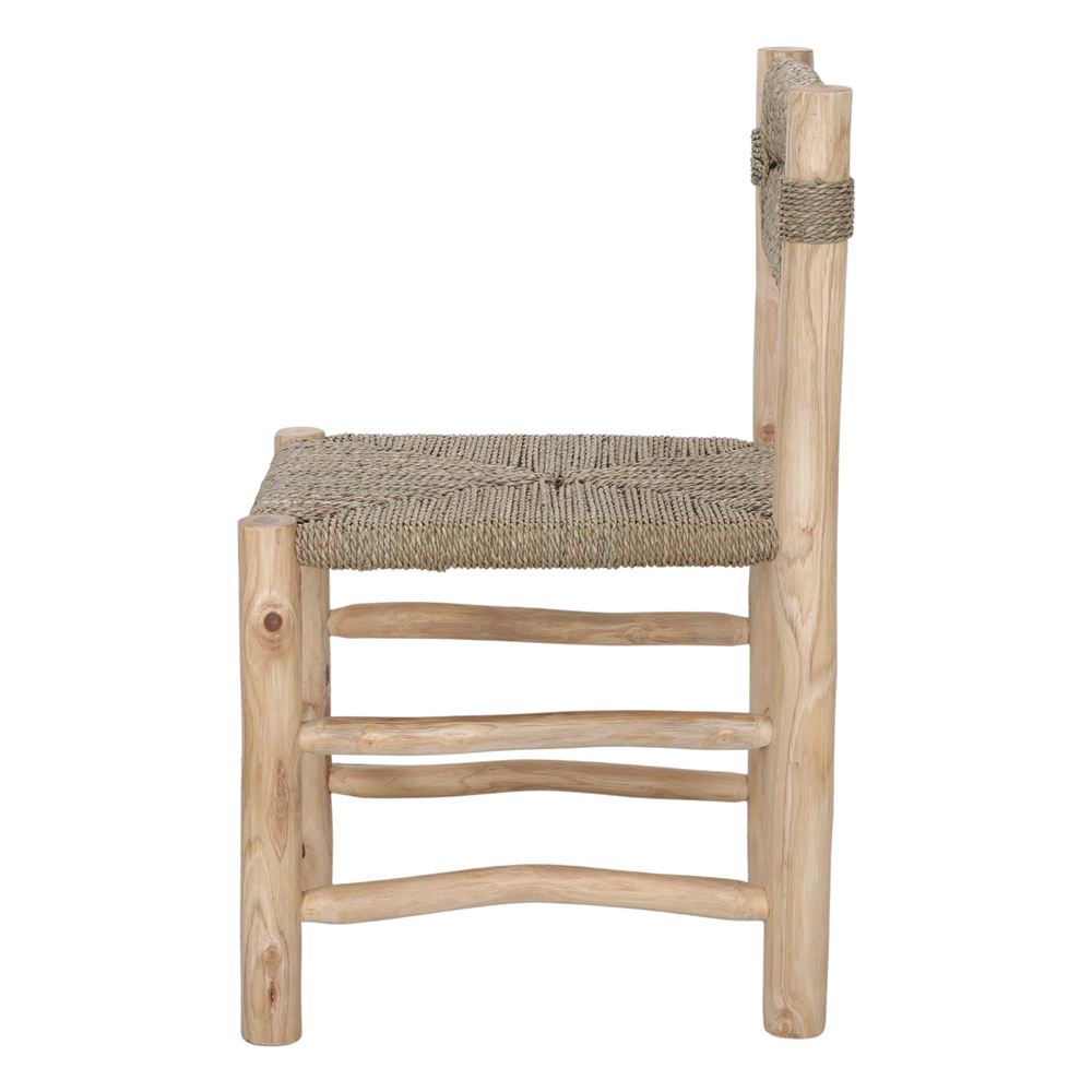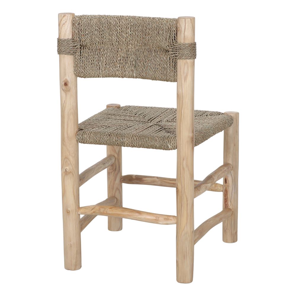 La seduta e lo schienale in corda di fibra marina intrecciata offrono una finitura artigianale che non solo aggiunge carattere, ma anche comfort e traspirabilità. Il suo design versatile si adatta perfettamente a sale da pranzo, terrazze coperte o spazi di ispirazione mediterranea e bohémien.