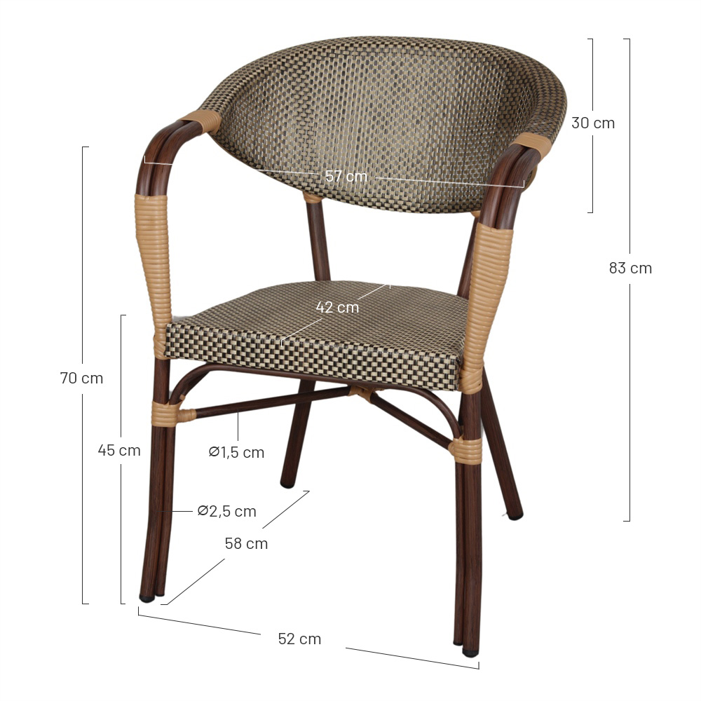 Misure: 57x56x83 cm | Altezza seduta: 45 cm | Altezza braccioli: 70-78 cm