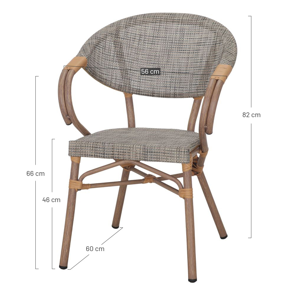 La sedia da esterno Antibes è un pezzo ideale per terrazze, giardini o spazi di accoglienza che cercano un tocco chic e funzionale nel più puro stile Bistro francese. Il suo design combina estetica e resistenza, offrendo comfort senza rinunciare allo stile.