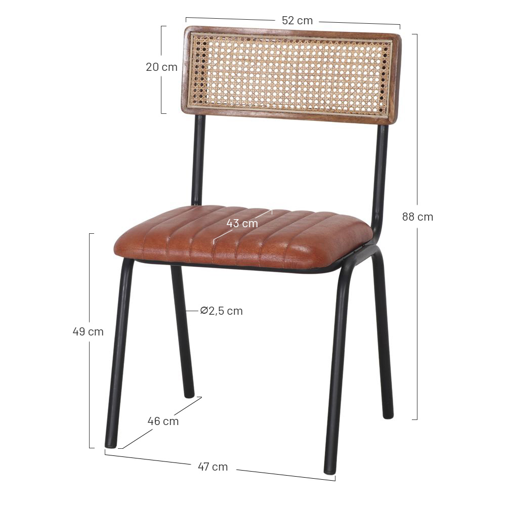 Seduta rivestita in pelle e schienale in legno massiccio di mango naturale e giunco di tipo cannage.