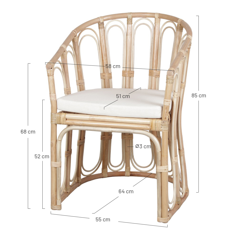 Misure: 58x64x87 cm | Altezza seduta: 50 cm | Braccioli: 68-83 cm | Spessore cuscino: 5 cm