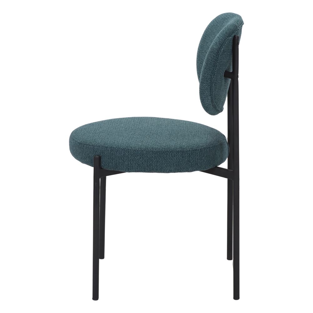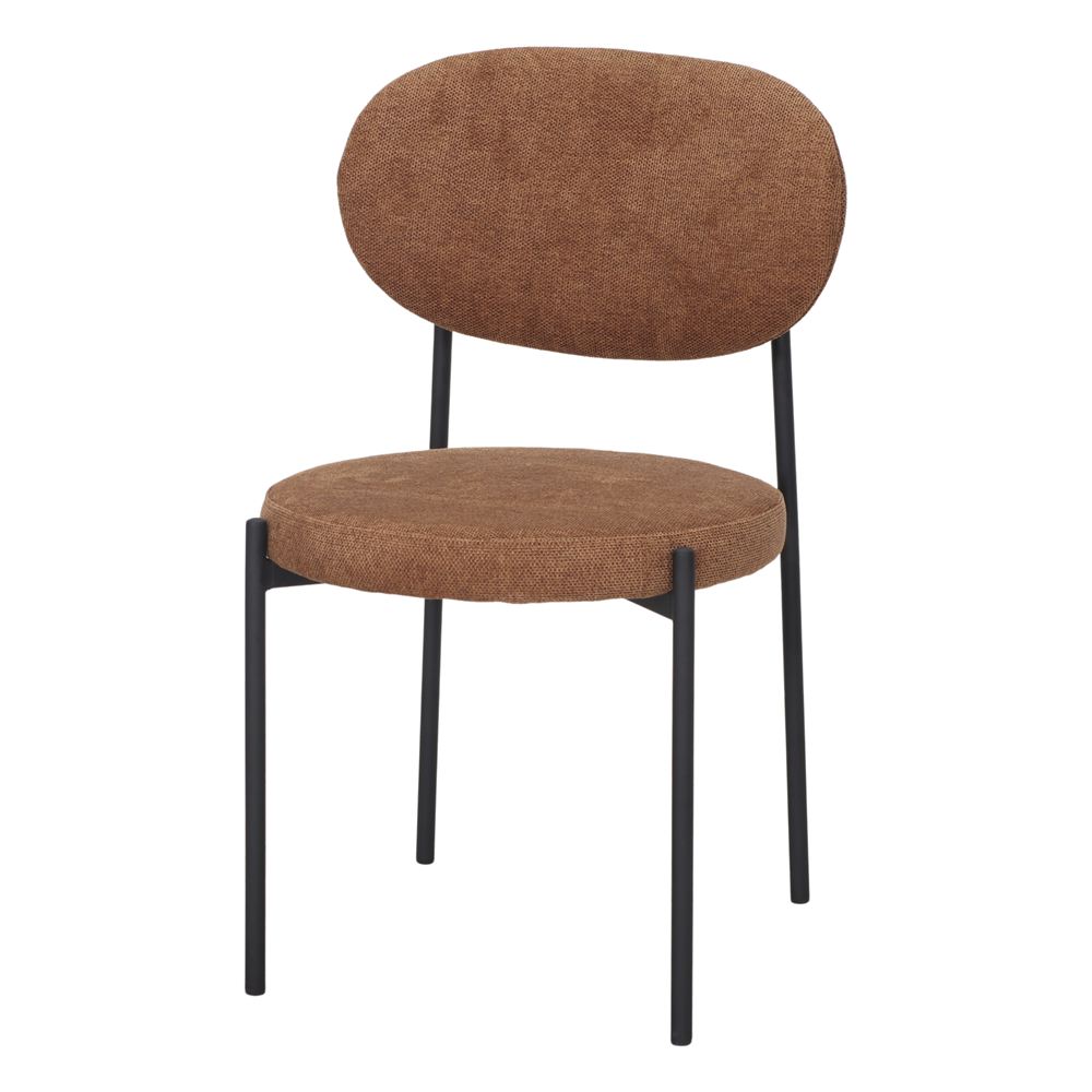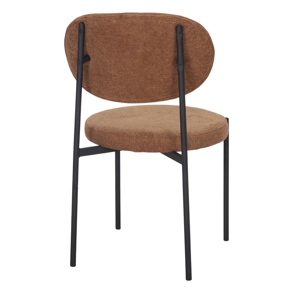 La seduta e lo schienale sono rivestiti in tessuto, che garantisce un’esperienza confortevole e piacevole anche durante l’uso prolungato. L’imbottitura, oltre a essere morbida al tatto, offre calore e versatilità decorativa, rendendo la sedia un elemento che bilancia la funzionalità con l’estetica.