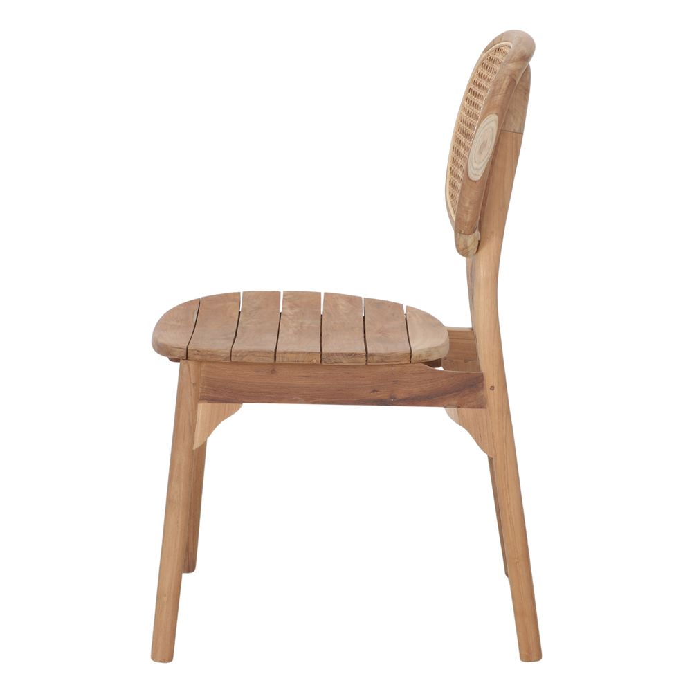 Realizzata in legno massello di teak di alta qualità, la sedia Adaline si distingue per la bellezza delle sue venature naturali. La finitura chiara ne esalta l’aspetto organico e luminoso, conferendole un aspetto accogliente e versatile che si adatta a diversi stili di arredamento, da quelli rustici a quelli più contemporanei. Lo schienale in canna intrecciata non solo aggiunge un dettaglio artigianale, ma migliora anche la traspirabilità e il comfort della seduta.