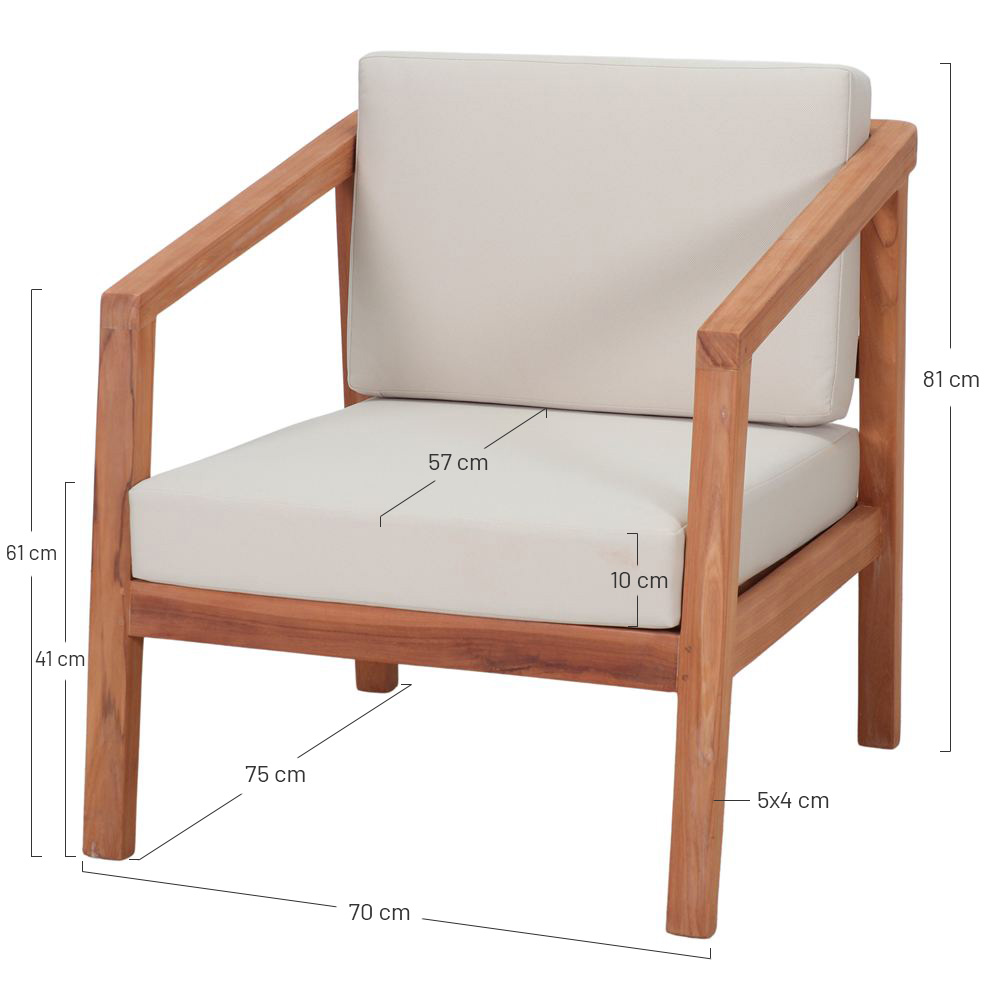 70x83x81 cm | Altezza seduta: 41 cm | Braccioli: 61-72 cm | Cuscino: 10 cm