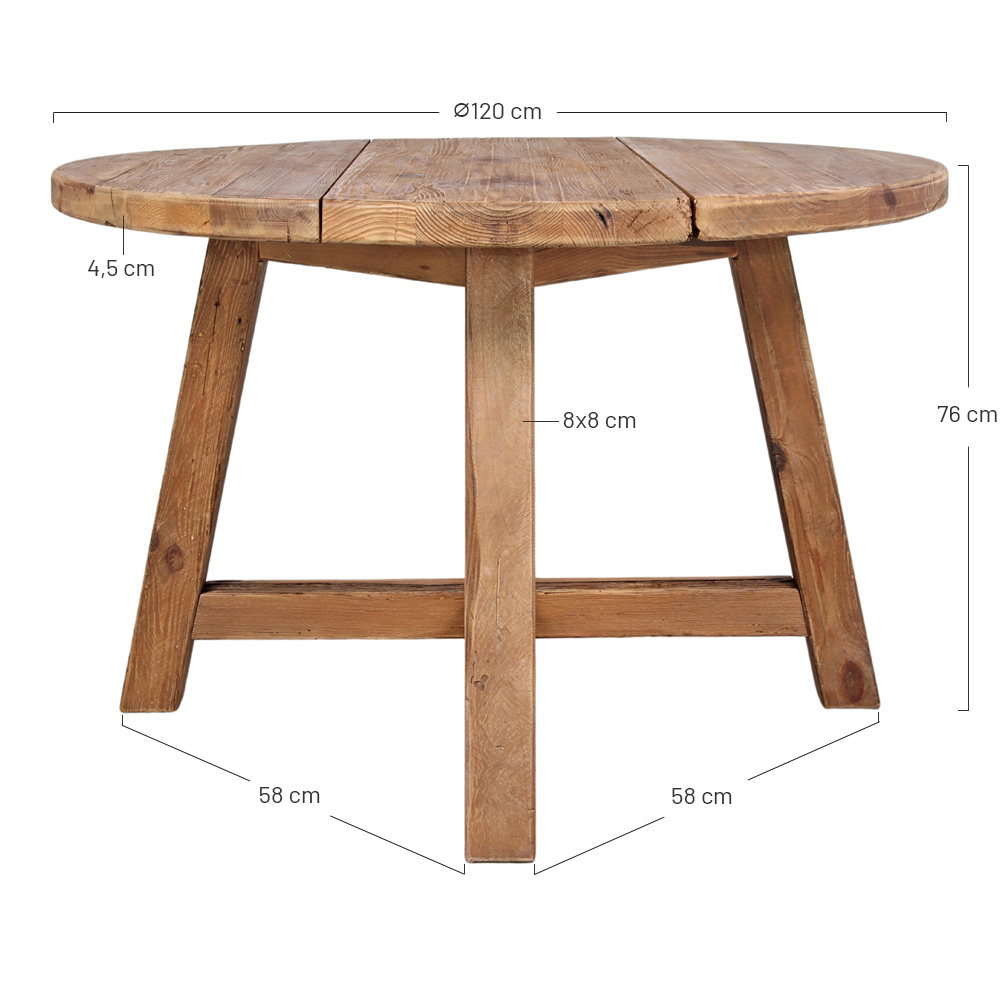 Tavolo da pranzo Staten in legno di pino massiccio riciclato, stile rustico e vintage.