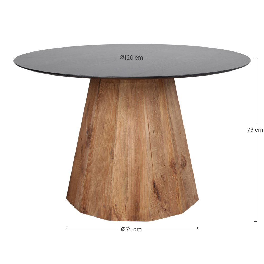 Struttura in legno di pino riciclato e piano in compensato con bordo smussato rifinito con vernice nera.